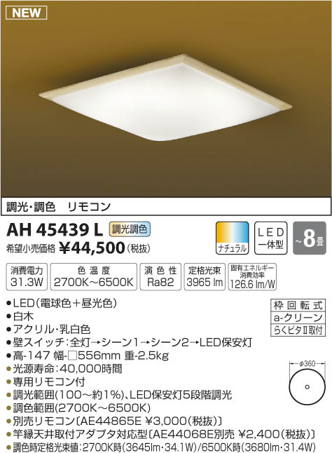LED31.3W|¡üLED¡ÊÅŵ忧¡ÜÃë¸÷¿§¡Ë|¡üÇòÌÚ|¡ü¥¢¥¯¥ê¥ë¡¦ÆýÇò¿§|¡üÊÉ¥¹¥¤¥Ã¥Á¡§Á´Åô¢ª¥·¡¼¥ó1¢ª¥·¡¼¥ó2¢ªLEDÊݰÂÅô|¡É¡ü¹â-147 Éý-¢¢556mm ½Å-2.5kg¡É|¡ü¾ÃÈñÅÅÎÏ:31.3W|¡ü¿§²¹ÅÙ:2700K¡Á6500K|¡ü±é¿§À:Ra82|¡É¡üÄê³Ê¸÷«:3¡¤965 lm¡É|¡É¡ü¸ÇÍ¥¨¥Í¥ë¥®¡¼¾ÃÈñ¸úΨ:126.6 lm/W¡É|¡É¡ü¸÷¸»¼÷Ì¿¡§40¡¤000»þ´Ö¡É|¡üÀìÍÑ¥ê¥â¥³¥óÉÕ|¡üÄ´¸÷ÈϰϡÊ100¡ÁÌó1¡ó¡Ë¡¢LEDÊݰÂÅô5Ãʳ¬Ä´¸÷|¡üÄ´¿§ÈϰϡÊ2700K¡Á6500K¡Ë|¡É¡üÊÌÇä¥ê¥â¥³¥ó¡ÌAE44865E ¡ï3¡¤000¡ÊÀÇÈ´¡Ë¡Í¡É|¡É¡ü´È±ïÅ·°æ¼èÉÕ¥¢¥À¥×¥¿Âбþ·¿¡ÌAE44068EÊÌÇä ¡ï2¡¤400¡ÊÀÇÈ´¡Ë¡Í¡É|¡üÄ´¿§»þÄê³Ê¸÷«ÃÍ¡§2700K»þ¡Ê3645lm¡¦34.1W¡Ë/6500K»þ¡Ê3680lm¡¦31.4W¡Ë ¡Á8¾ö