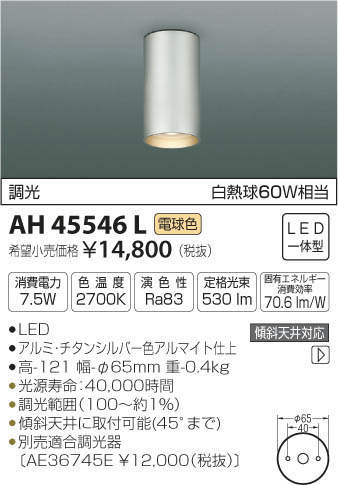 ¥³¥¤¥º¥ß¾ÈÌÀ KOIZUMI LED ¾®·¿¥·¡¼¥ê¥ó¥° AH45546L
