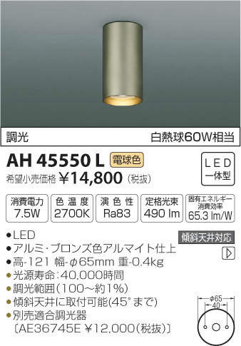 ¥³¥¤¥º¥ß¾ÈÌÀ KOIZUMI LED ¾®·¿¥·¡¼¥ê¥ó¥° AH45550L