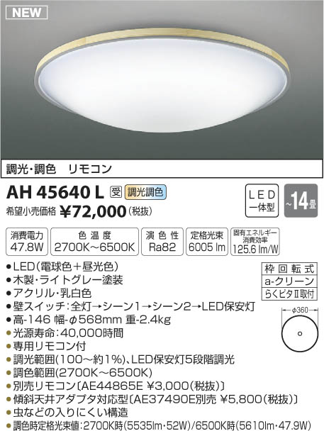 LED47.8W|¡üLED¡ÊÅŵ忧¡ÜÃë¸÷¿§¡Ë|¡üÌÚÀ½¡¦¥é¥¤¥È¥°¥ì¡¼|¡ü¥¢¥¯¥ê¥ë¡¦ÆýÇò¿§|¡üÊÉ¥¹¥¤¥Ã¥Á¡§Á´Åô¢ª¥·¡¼¥ó1¢ª¥·¡¼¥ó2¢ªLEDÊݰÂÅô|¡É¡ü¹â-146 Éý-¦Õ568mm ½Å-2.4kg¡É|¡ü¾ÃÈñÅÅÎÏ:47.8W|¡ü¿§²¹ÅÙ:2700K¡Á6500K|¡ü±é¿§À:Ra82|¡É¡üÄê³Ê¸÷«:6¡¤005 lm¡É|¡É¡ü¸ÇÍ¥¨¥Í¥ë¥®¡¼¾ÃÈñ¸úΨ:125.6 lm/W¡É|¡É¡ü¸÷¸»¼÷Ì¿¡§40¡¤000»þ´Ö¡É|¡üÀìÍÑ¥ê¥â¥³¥óÉÕ|¡üÄ´¸÷ÈϰϡÊ100¡ÁÌó1¡ó¡Ë¡¢LEDÊݰÂÅô5Ãʳ¬Ä´¸÷|¡üÄ´¿§ÈϰϡÊ2700K¡Á6500K¡Ë|¡É¡üÊÌÇä¥ê¥â¥³¥ó¡ÌAE44865E ¡ï3¡¤000¡ÊÀÇÈ´¡Ë¡Í¡É|¡É¡ü·¹¼ÐÅ·°æ¥¢¥À¥×¥¿Âбþ·¿¡ÌAE37490EÊÌÇä ¡ï5¡¤800¡ÊÀÇÈ´¡Ë¡Í¡É|¡üÃî¤Ê¤É¤ÎÆþ¤ê¤Ë¤¯¤¤¹½Â¤|¡üÄ´¿§»þÄê³Ê¸÷«ÃÍ¡§2700K»þ¡Ê5535lm¡¦52W¡Ë/6500K»þ¡Ê5610lm¡¦47.9W¡Ë ¡Á14¾ö