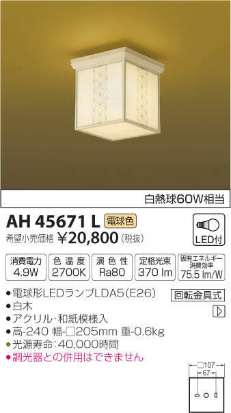 ¥³¥¤¥º¥ß¾ÈÌÀ KOIZUMI LED ÏÂÉ÷¥·¡¼¥ê¥ó¥° AH45671L