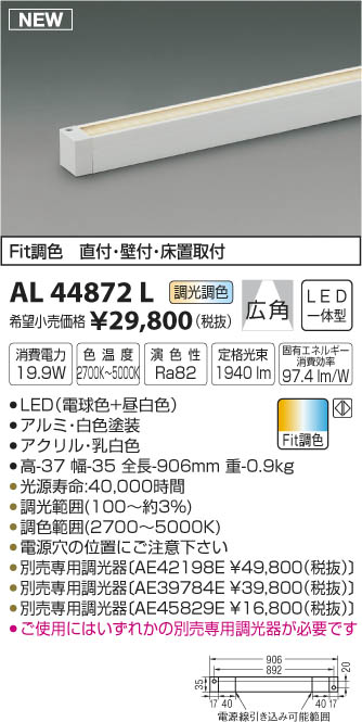 LED19.9W|¡üLED¡ÊÅŵ忧¡ÜÃëÇò¿§¡Ë|¡ü¥¢¥ë¥ß¡¦Çò¿§ÅÉÁõ|¡ü¥¢¥¯¥ê¥ë¡¦ÆýÇò¿§|¡É¡ü¹â-37 Éý-35 Á´Ä¹-906mm ½Å-0.9kg¡É|¡ü¾ÃÈñÅÅÎÏ:19.9W|¡ü¿§²¹ÅÙ:2700K¡Á5000K|¡ü±é¿§À:Ra82|¡É¡üÄê³Ê¸÷«:1¡¤940 lm¡É|¡É¡ü¸ÇÍ¥¨¥Í¥ë¥®¡¼¾ÃÈñ¸úΨ:97.4 lm/W¡É|¡É¡ü¸÷¸»¼÷Ì¿¡§40¡¤000»þ´Ö¡É|¡üÄ´¸÷ÈϰϡÊ100¡ÁÌó3¡ó¡Ë|¡üÄ´¿§ÈϰϡÊ2700¡Á5000K¡Ë|¡üÅŸ»·ê¤Î°ÌÃ֤ˤ´Ãí°Õ²¼¤µ¤¤|¡É¡üÊÌÇäÀìÍÑÄ´¸÷´ï¡ÌAE42198E ¡ï49¡¤800¡ÊÀÇÈ´¡Ë¡Í¡É|¡É¡üÊÌÇäÀìÍÑÄ´¸÷´ï¡ÌAE39784E ¡ï39¡¤800¡ÊÀÇÈ´¡Ë¡Í¡É|¡É¡üÊÌÇäÀìÍÑÄ´¸÷´ï¡ÌAE45829E ¡ï16¡¤800¡ÊÀÇÈ´¡Ë¡Í¡É|¡ü¤´»ÈÍѤˤϤ¤¤º¤ì¤«¤ÎÊÌÇäÀìÍÑÄ´¸÷´ï¤¬É¬ÍפǤ¹