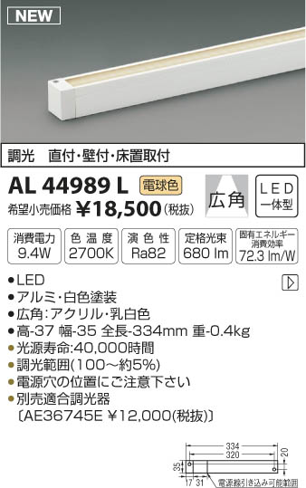 ¥³¥¤¥º¥ß¾ÈÌÀ KOIZUMI ´ÖÀܾÈÌÀ LED¡ÊÅŵ忧¡Ë AL44989L