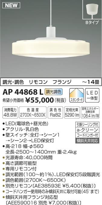 ¥³¥¤¥º¥ß¾ÈÌÀ KOIZUMI ¥Ú¥ó¥À¥ó¥È LED¡ÊÅŵ忧¡ÜÃë¸÷¿§¡Ë AP44868L