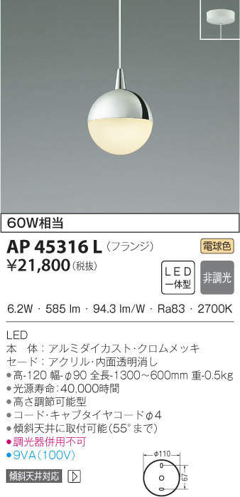 KOIZUMI ¥³¥¤¥º¥ß¾ÈÌÀ ¥Ú¥ó¥À¥ó¥È AP45316L