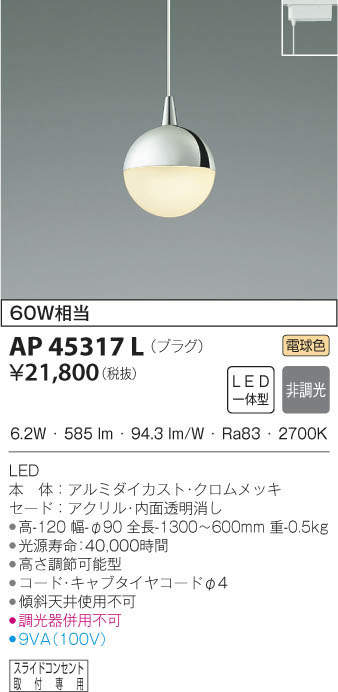 KOIZUMI ¥³¥¤¥º¥ß¾ÈÌÀ ¥Ú¥ó¥À¥ó¥È AP45317L