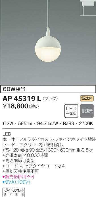 KOIZUMI ¥³¥¤¥º¥ß¾ÈÌÀ ¥Ú¥ó¥À¥ó¥È AP45319L