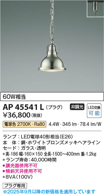 Koizumi ¥³¥¤¥º¥ß¾ÈÌÀ LED¥Ú¥ó¥À¥ó¥È AP45541L