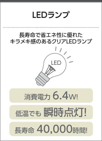 ÇòÇ®µå60WÁêÅö|¡üÅŵå·Á¥¯¥ê¥¢LED¥é¥ó¥×LDA6¡ÊE26¡Ë|¡ü¹Ý¡¦¥¢¥¤¥¢¥óÉ÷ÅÉÁõ¥¢¥ó¥Æ¥£¡¼¥¯»Å¾å|¡ü¥¬¥é¥¹¡¦Æ©ÌÀ|¡É¡ü¹â-219 Éý-¦Õ138 Á´Ä¹-1300¡Á550mm ½Å-0.8kg¡É|¡ü¾ÃÈñÅÅÎÏ:6.4W|¡ü¿§²¹ÅÙ:2700K|¡ü±é¿§À:Ra82|¡É¡üÄê³Ê¸÷«:475 lm¡É|¡É¡ü¸ÇÍ¥¨¥Í¥ë¥®¡¼¾ÃÈñ¸úΨ:74.2 lm/W¡É|¡É¡ü¸÷¸»¼÷Ì¿¡§40¡¤000»þ´Ö¡É|¡ü¹â¤µÄ´Àá²Äǽ·¿|¡É¡ü¥³¡¼¥É¡¦¥¥ã¥Ö¥¿¥¤¥ä¥³¡¼¥É ¦Õ6¡É|¡üÄ´¸÷´ï¤È¤ÎÊ»ÍѤϤǤ¤Þ¤»¤ó
