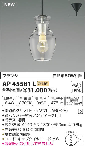 ¥³¥¤¥º¥ß¾ÈÌÀ KOIZUMI ¥Ú¥ó¥À¥ó¥È LED¡ÊÅŵ忧¡Ë AP45581L