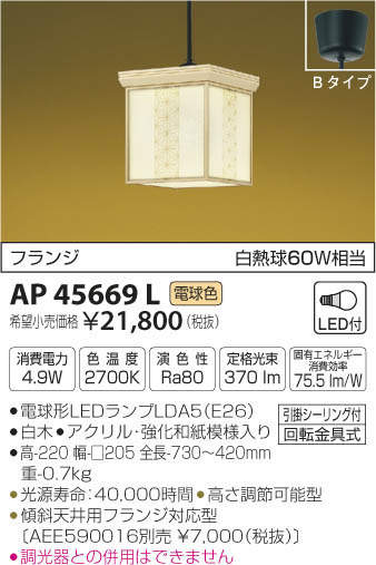 ¥³¥¤¥º¥ß¾ÈÌÀ KOIZUMI LED ÏÂÉ÷¥Ú¥ó¥À¥ó¥È AP45669L