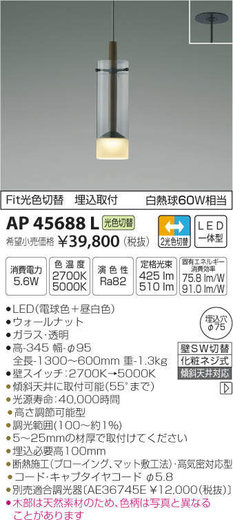 ¥³¥¤¥º¥ß¾ÈÌÀ KOIZUMI LED ¥Ú¥ó¥À¥ó¥È AP45688L