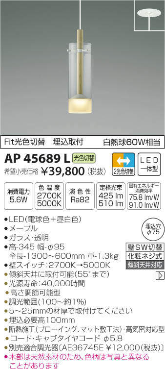 ¥³¥¤¥º¥ß¾ÈÌÀ KOIZUMI LED ¥Ú¥ó¥À¥ó¥È AP45689L