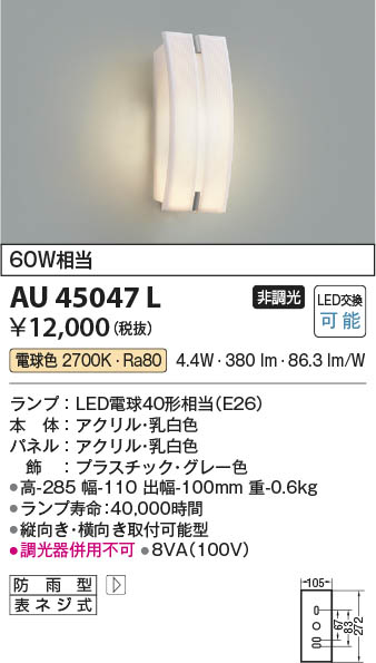 Koizumi ¥³¥¤¥º¥ß¾ÈÌÀ LEDËɱ«·¿¥Ö¥é¥±¥Ã¥È AU45047L