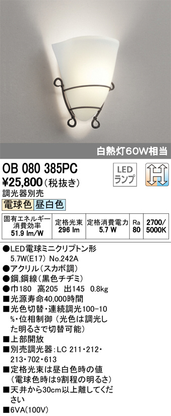 ODELIC ¥ª¡¼¥Ç¥ê¥Ã¥¯ ¥Ö¥é¥±¥Ã¥È OB080385PC