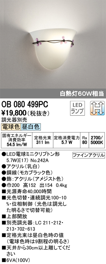 ODELIC ¥ª¡¼¥Ç¥ê¥Ã¥¯ ¥Ö¥é¥±¥Ã¥È OB080499PC
