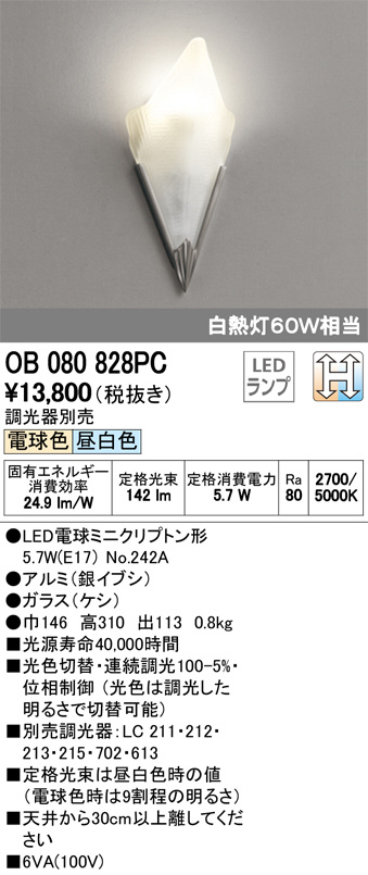 ODELIC ¥ª¡¼¥Ç¥ê¥Ã¥¯ ¥Ö¥é¥±¥Ã¥È OB080828PC