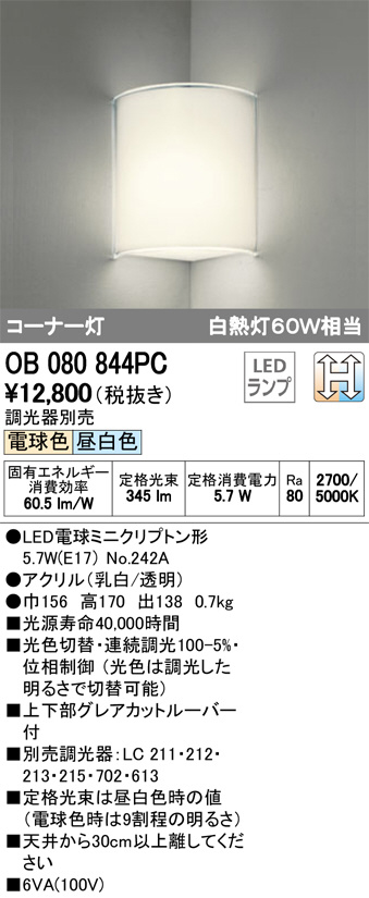 ODELIC ¥ª¡¼¥Ç¥ê¥Ã¥¯ ¥Ö¥é¥±¥Ã¥È OB080844PC