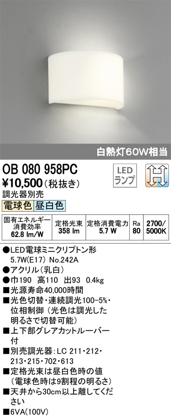 ODELIC ¥ª¡¼¥Ç¥ê¥Ã¥¯ ¥Ö¥é¥±¥Ã¥È OB080958PC
