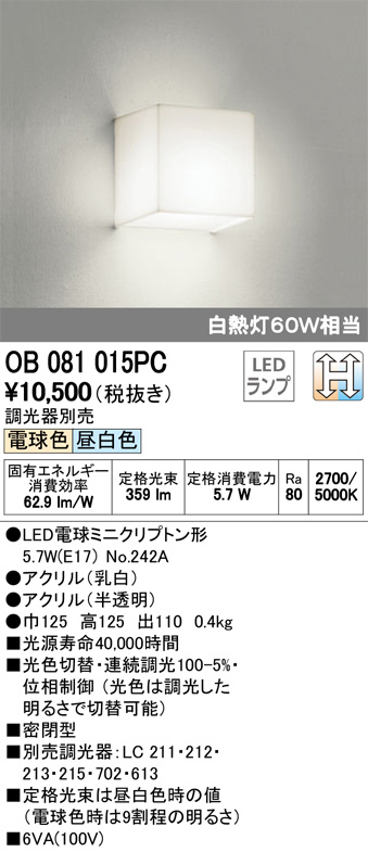 ODELIC ¥ª¡¼¥Ç¥ê¥Ã¥¯ ¥Ö¥é¥±¥Ã¥È OB081015PC