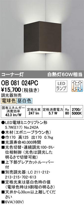 ODELIC ¥ª¡¼¥Ç¥ê¥Ã¥¯ ¥Ö¥é¥±¥Ã¥È OB081024PC