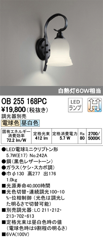 ODELIC ¥ª¡¼¥Ç¥ê¥Ã¥¯ ¥Ö¥é¥±¥Ã¥È OB255168PC