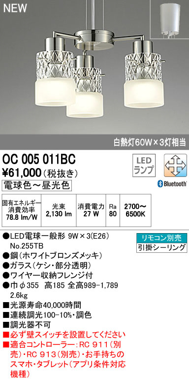 ODELIC ¥ª¡¼¥Ç¥ê¥Ã¥¯ ¥·¥ã¥ó¥Ç¥ê¥¢ OC005011BC