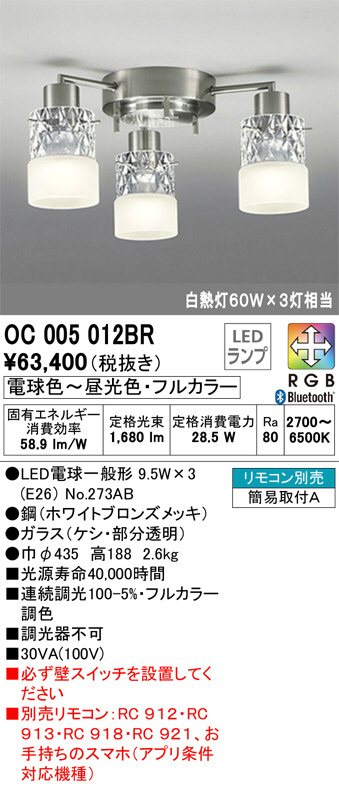 ODELIC ¥ª¡¼¥Ç¥ê¥Ã¥¯ ¥·¥ã¥ó¥Ç¥ê¥¢ OC005012BR