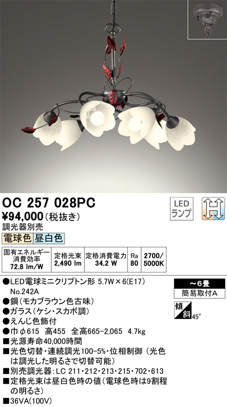 ODELIC ¥ª¡¼¥Ç¥ê¥Ã¥¯ ¥·¥ã¥ó¥Ç¥ê¥¢ OC257028PC