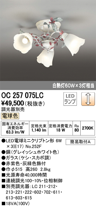 ODELIC ¥ª¡¼¥Ç¥ê¥Ã¥¯ ¥·¥ã¥ó¥Ç¥ê¥¢ OC257075LC