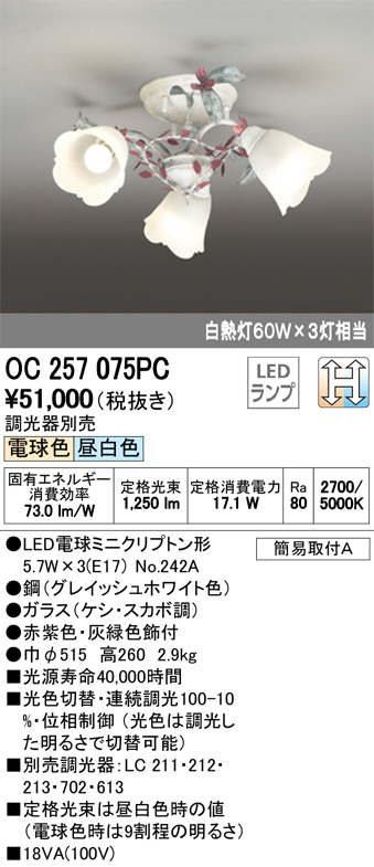 ODELIC ¥ª¡¼¥Ç¥ê¥Ã¥¯ ¥·¥ã¥ó¥Ç¥ê¥¢ OC257075PC