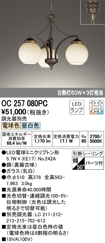 ODELIC ¥ª¡¼¥Ç¥ê¥Ã¥¯ ¥·¥ã¥ó¥Ç¥ê¥¢ OC257080PC