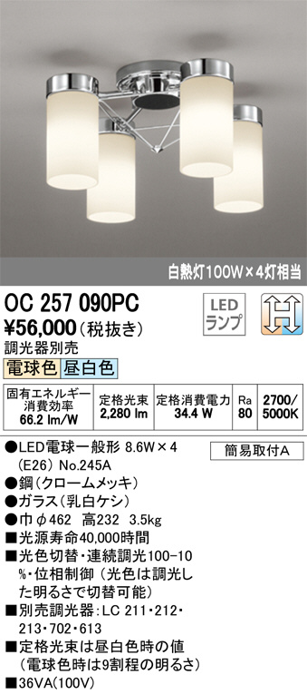ODELIC ¥ª¡¼¥Ç¥ê¥Ã¥¯ ¥·¥ã¥ó¥Ç¥ê¥¢ OC257090PC