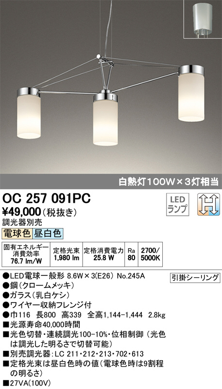 ODELIC ¥ª¡¼¥Ç¥ê¥Ã¥¯ ¥·¥ã¥ó¥Ç¥ê¥¢ OC257091PC
