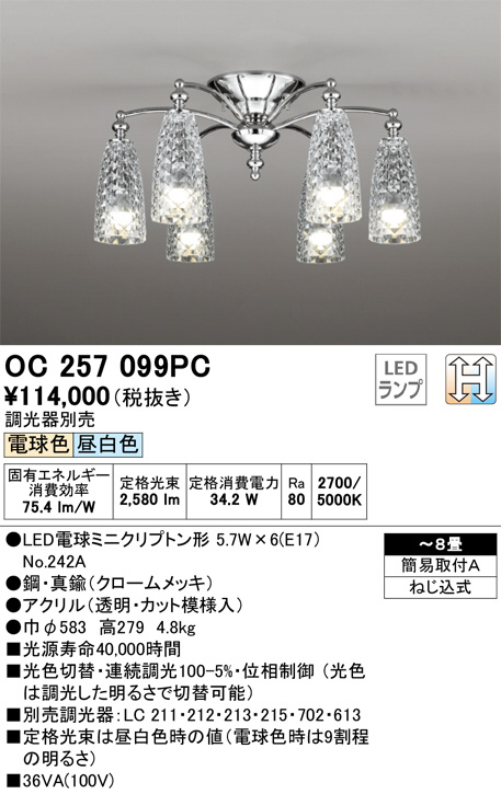 ODELIC ¥ª¡¼¥Ç¥ê¥Ã¥¯ ¥·¥ã¥ó¥Ç¥ê¥¢ OC257099PC
