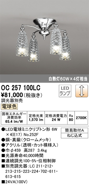 ODELIC ¥ª¡¼¥Ç¥ê¥Ã¥¯ ¥·¥ã¥ó¥Ç¥ê¥¢ OC257100LC