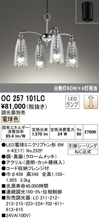 ODELIC ¥ª¡¼¥Ç¥ê¥Ã¥¯ ¥·¥ã¥ó¥Ç¥ê¥¢ OC257101LC