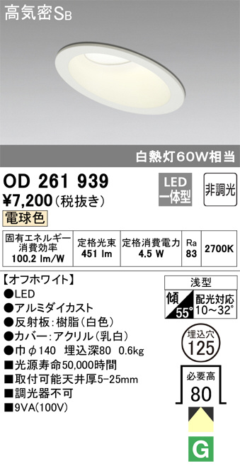 ODELIC ¥ª¡¼¥Ç¥ê¥Ã¥¯ ¥À¥¦¥ó¥é¥¤¥È OD261939