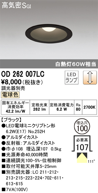 ODELIC ¥ª¡¼¥Ç¥ê¥Ã¥¯ ¥À¥¦¥ó¥é¥¤¥È OD262007LC