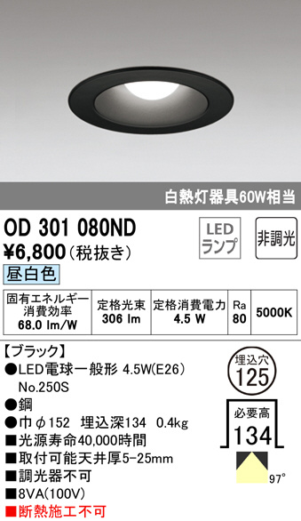 ODELIC ¥ª¡¼¥Ç¥ê¥Ã¥¯ ¥À¥¦¥ó¥é¥¤¥È OD301080ND
