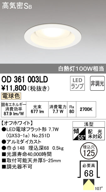 ODELIC ¥ª¡¼¥Ç¥ê¥Ã¥¯ LED ¥À¥¦¥ó¥é¥¤¥È OD361003LD