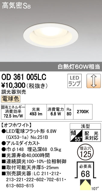 ODELIC ¥ª¡¼¥Ç¥ê¥Ã¥¯ LED ¥À¥¦¥ó¥é¥¤¥È OD361005LC