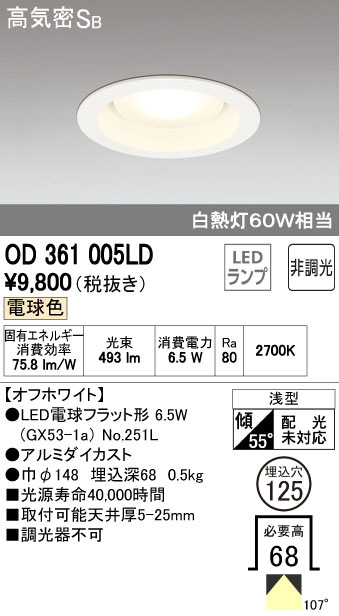 ODELIC ¥ª¡¼¥Ç¥ê¥Ã¥¯ LED ¥À¥¦¥ó¥é¥¤¥È OD361005LD