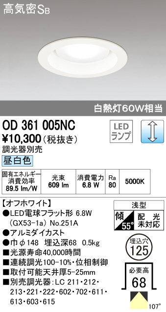 ODELIC ¥ª¡¼¥Ç¥ê¥Ã¥¯ LED ¥À¥¦¥ó¥é¥¤¥È OD361005NC