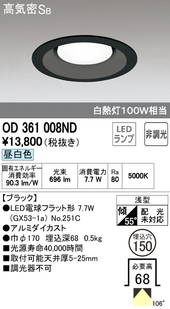 ODELIC ¥ª¡¼¥Ç¥ê¥Ã¥¯ LED ¥À¥¦¥ó¥é¥¤¥È OD361008ND