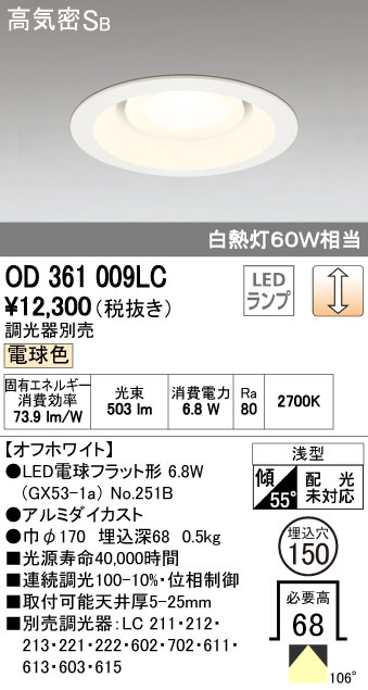 ODELIC ¥ª¡¼¥Ç¥ê¥Ã¥¯ LED ¥À¥¦¥ó¥é¥¤¥È OD361009LC