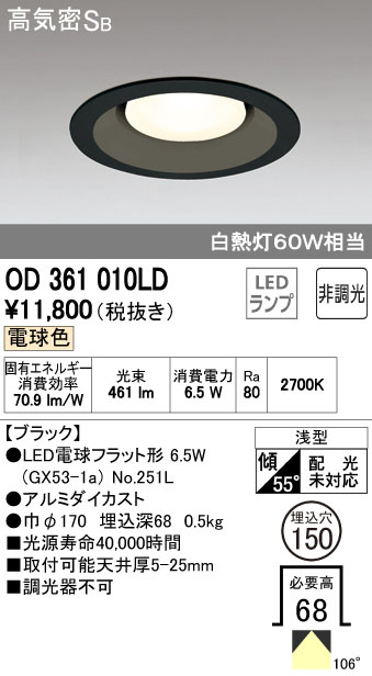 ODELIC ¥ª¡¼¥Ç¥ê¥Ã¥¯ LED ¥À¥¦¥ó¥é¥¤¥È OD361010LD