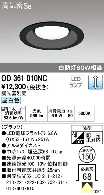 ODELIC ¥ª¡¼¥Ç¥ê¥Ã¥¯ LED ¥À¥¦¥ó¥é¥¤¥È OD361010NC
