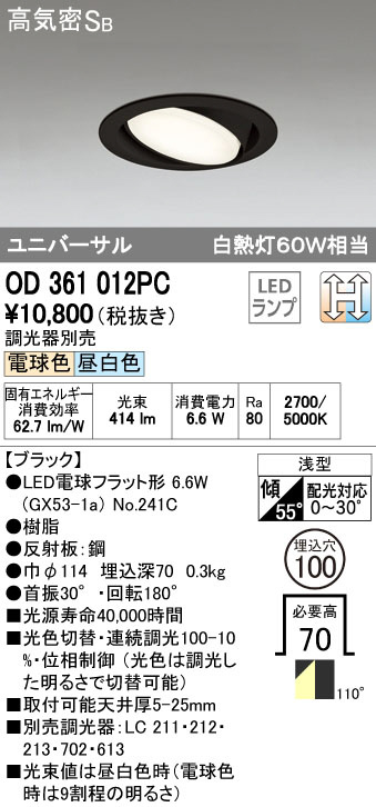 ODELIC ¥ª¡¼¥Ç¥ê¥Ã¥¯ LED ¥À¥¦¥ó¥é¥¤¥È OD361012PC