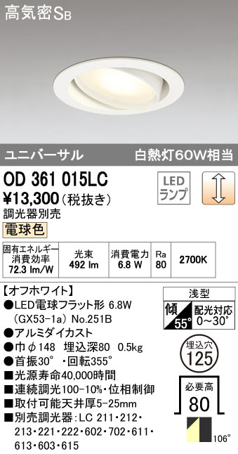 ODELIC ¥ª¡¼¥Ç¥ê¥Ã¥¯ LED ¥À¥¦¥ó¥é¥¤¥È OD361015LC